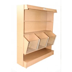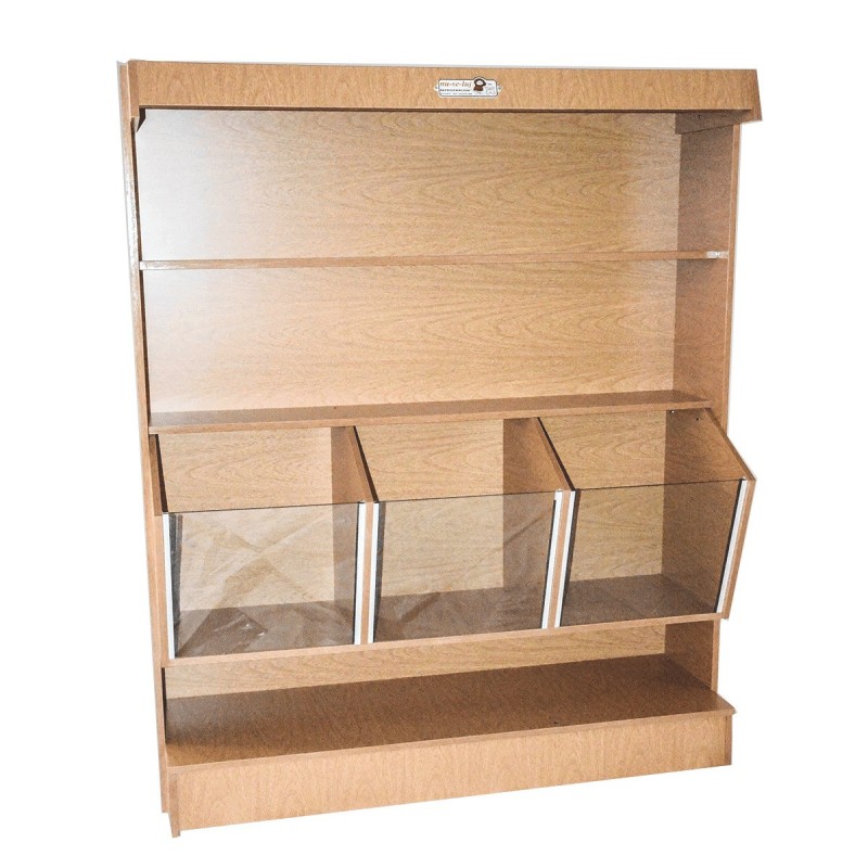 – Realizada en material melamínico línea Roble.